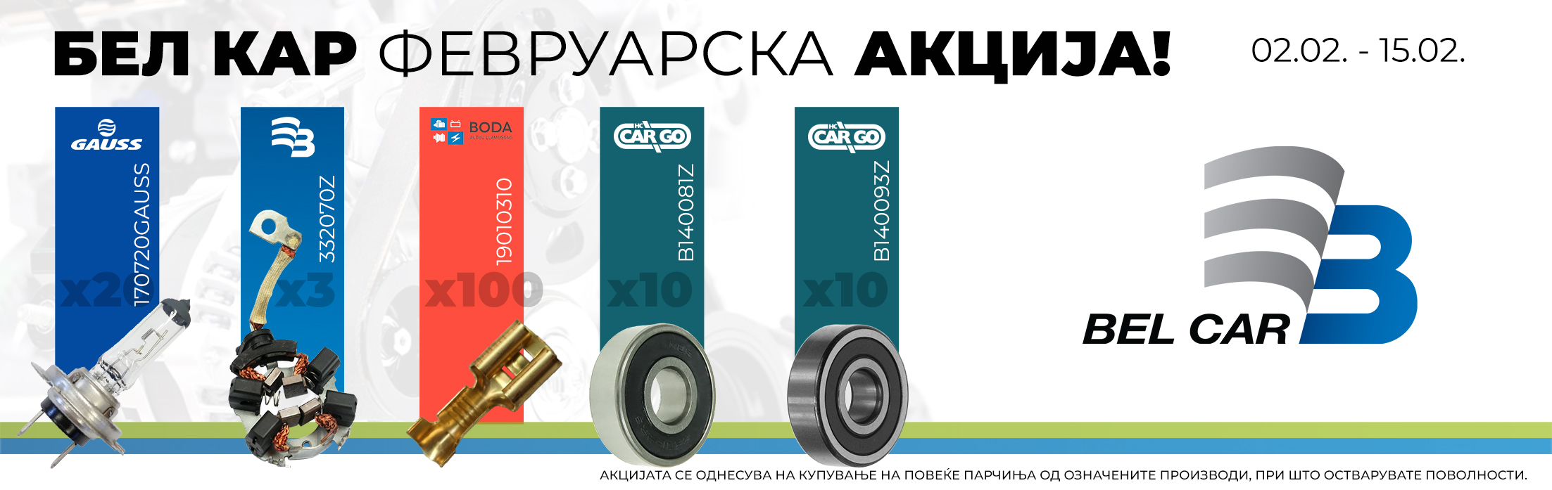 БЕЛ КАР ДООЕЛ е компанија која на македонскиот пазар е присутна веќе 7 години. Нашата главна мисија е да го снабдуваме пазарот со компоненти за електрични системи и системи за климатизација за патнички автомобили, камиони и работни машини од сите намени. Ние им помагаме на нашите партнери во водење на успешен бизнис и во снабдувањето на корисниците. Квалитетното работење ни помага да останеме водечки снабдувач на овој сегмент од пазарот на автоделови-електрика во РС Македонија. Нашата визија е да останеме професионални на сите нивоа со професионален пристап насочен кон нашите деловни партнери. Со задоволство ќе ви помогнеме со нашето знаење и искуство во вашите секојдневни потреби. Во нашиот асортиман секако можете да најдете се што ви треба за електрика и климатизација за вашето возило!